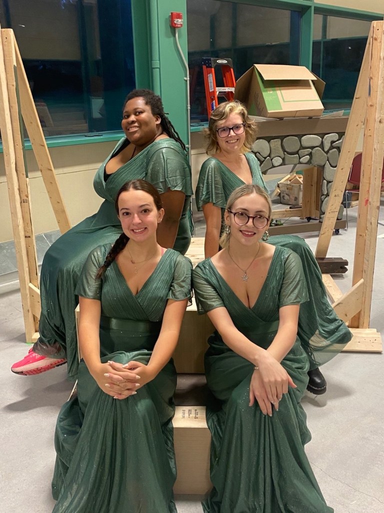 From left to right, top-down: Ronnette (Anyssa Keeling-Oliver), Crystal (Grace Freer), Chiffon(Grace Garrity), and Shirelle(Melanie Blevins)